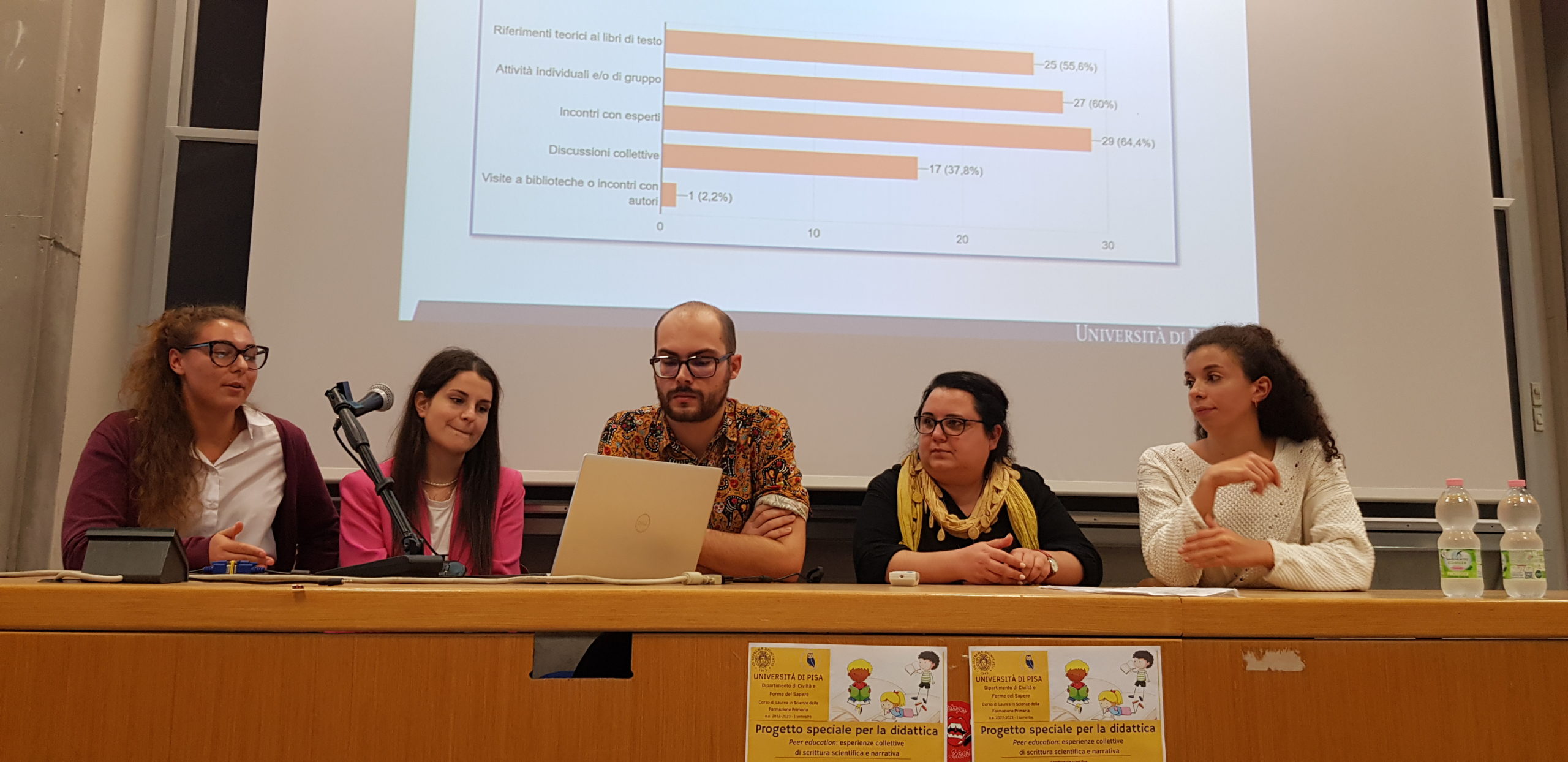 È iniziato con il I semestre dell’anno accademico 2022-23 il Progetto Speciale per la Didattica finanziato dall’Università di Pisa “Peer Education: esperienze collettive di scrittura scientifica e narrativa”, che ha coinvolto studentesse e studenti del Corso di Laurea Magistrale a ciclo Unico in Scienze della Formazione Primaria, con il coordinamento scientifico di Elena Falaschi.