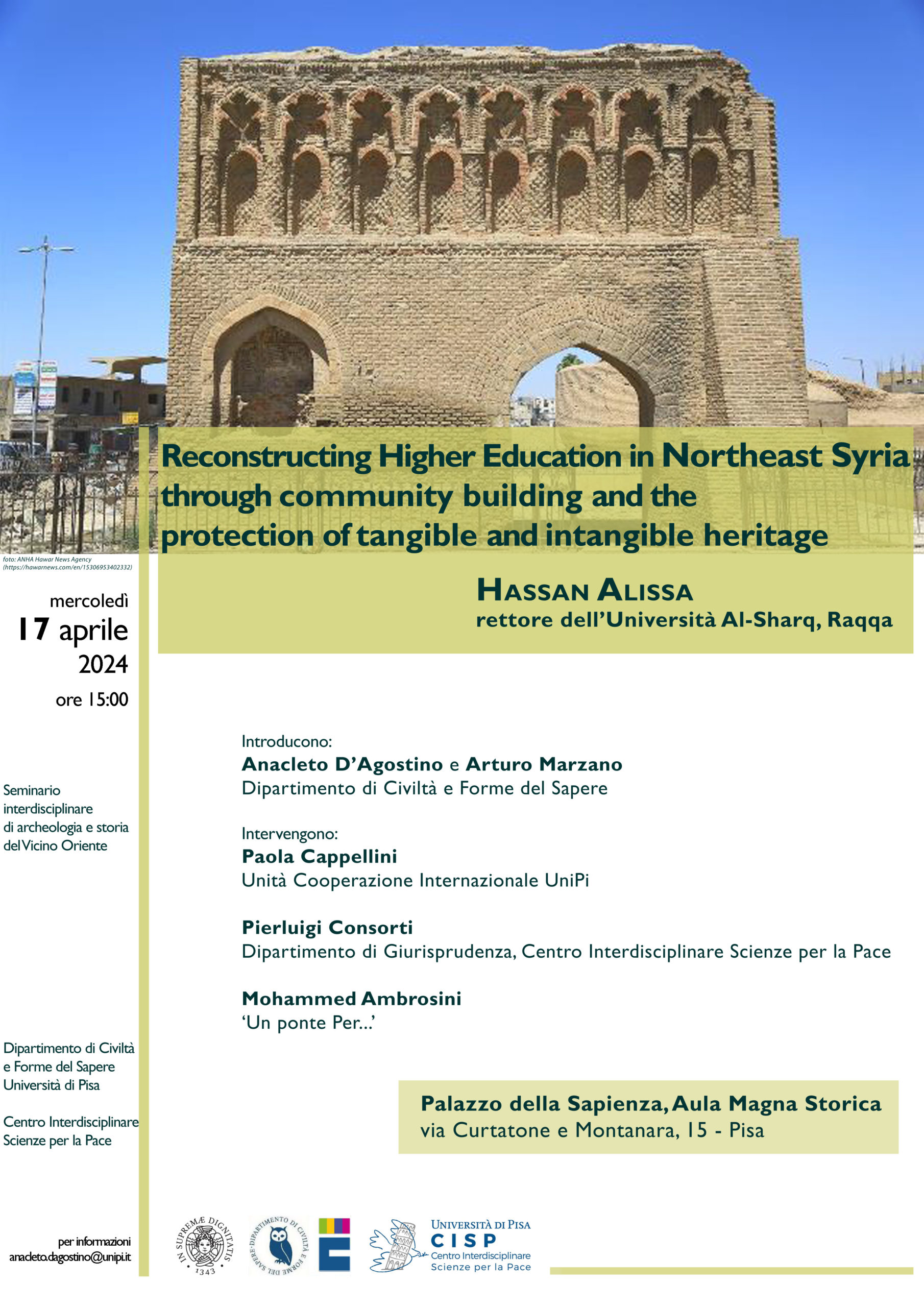 L’incontro del 17 aprile è organizzato insieme al prof. Arturo Marzano e in collaborazione con il CISP – Centro Interdisciplinare Scienze per la Pace, con la partecipazione del prof. Pierluigi Consorti (Dipartimento di Giurisprudenza dell’Università di Pisa) e Mohammed Ambrosini (‘Un ponte per… ’).