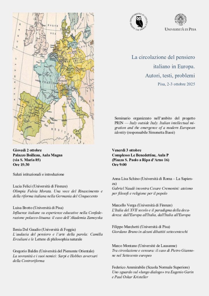 Venerdì 10 ottobre, alle ore 12, in aula Car 2 del Polo Carmignani (Piazza dei Cavalieri 6, Pisa), la Prof.ssa…
