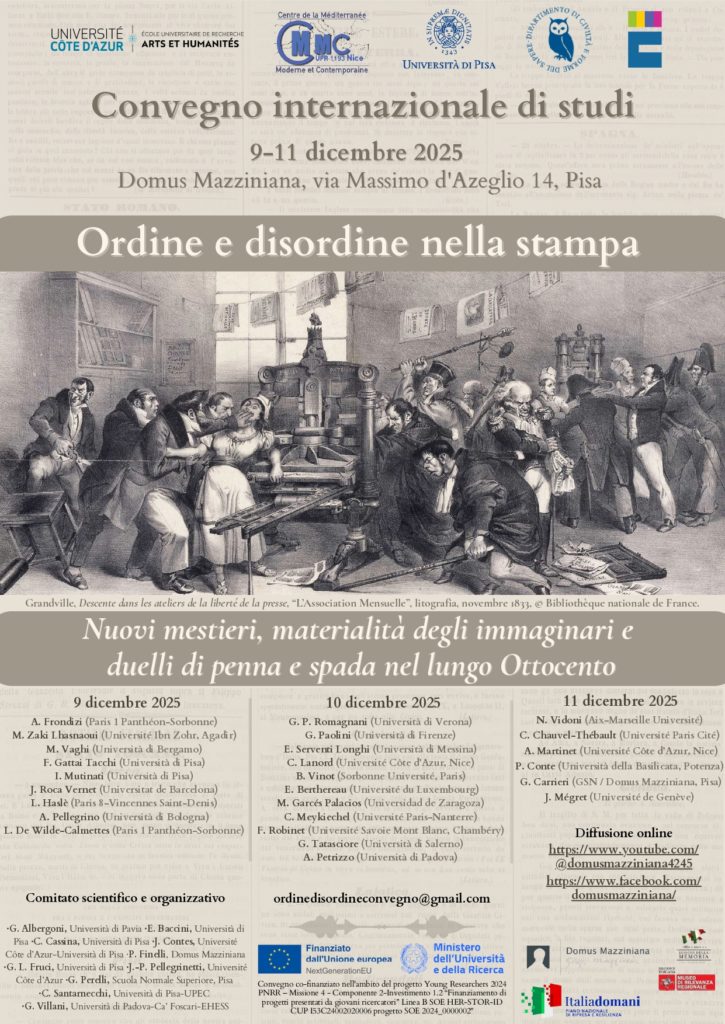 Dal 9 all’11 dicembre si terrà presso la Domus Mazziniana, Pisa, il convegno internazionale “Ordine e disordine nella stampa: nuovi…