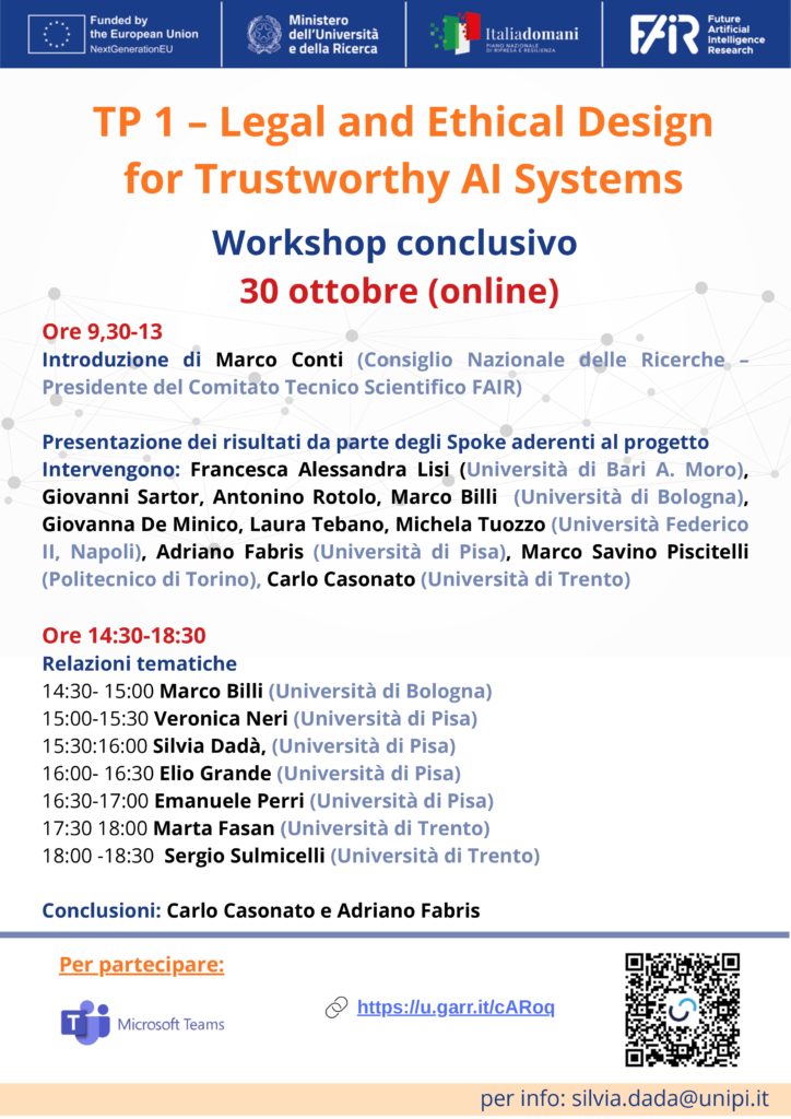 Giovedì 30 ottobre, ore 9:30, si svolgera il workshop conclusivo del Transversal Project 1 – Legal and Ethical Design for…