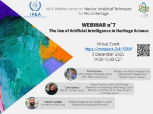 Mercoledì 3 dicembre dalle 14:00 il prof. Gabriele Gattiglia terrà il seminario dal titolo “Artificial Intelligence and Heritage: A Critical Decade of Archaeological Innovation”, all’interno del ciclo organizzato dall’International Atomic Energy Agency su Nuclear Analytical Techniques for World Heritage ed intitolato The Use of Artificial Intelligence in Heritage Science.