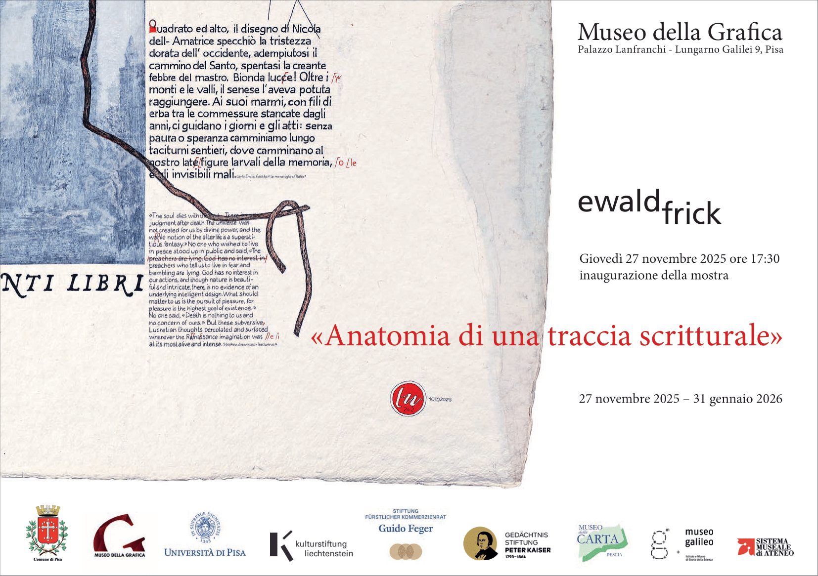Il Museo della Grafica presenta la mostra Ewald Frick. Anatomia di una traccia scritturale, che sarà visitabile dal 27 novembre 2025 al 31 gennaio 2026.