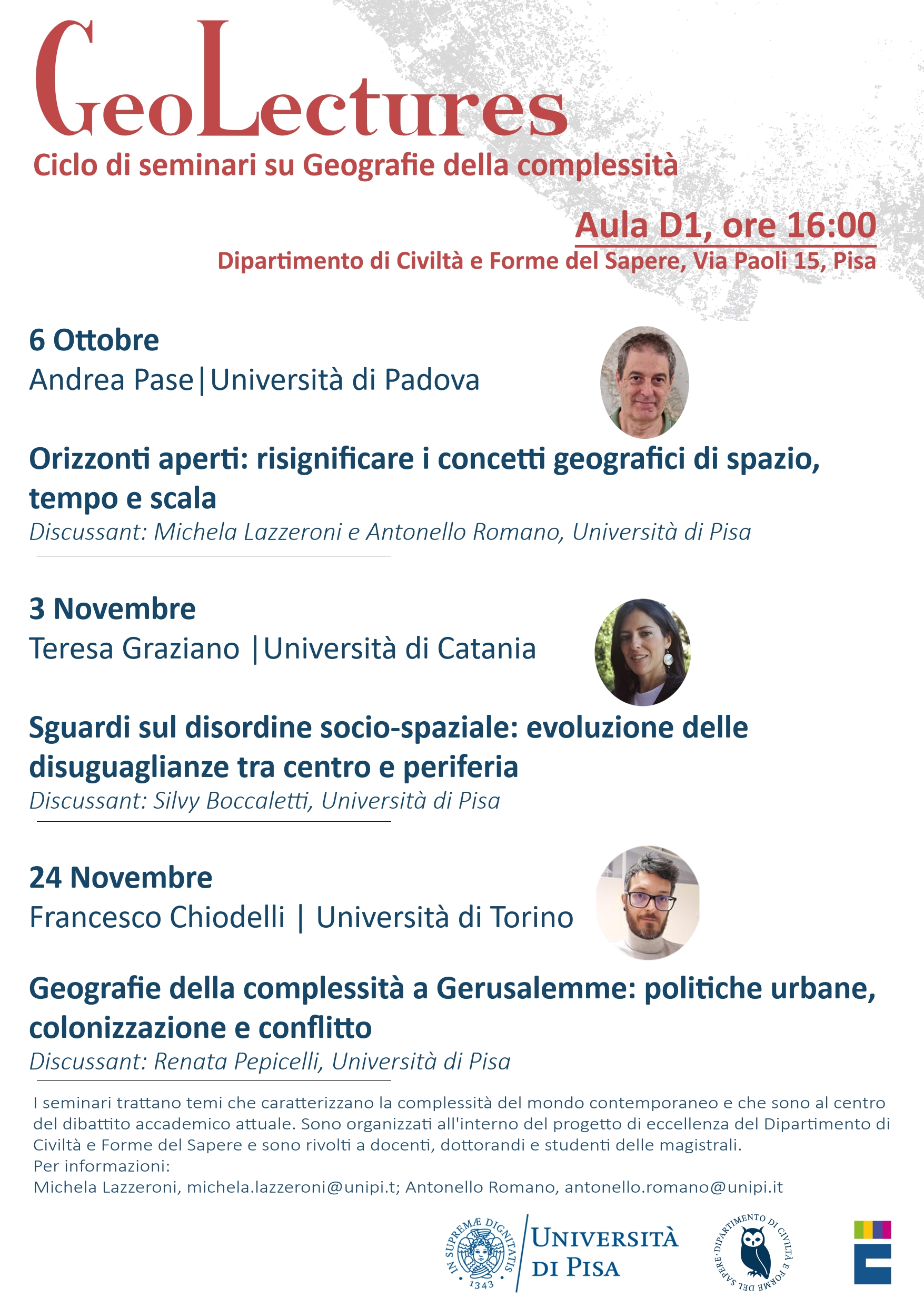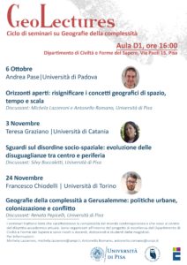 Lunedì 24 novembre si terrà il terzo dei seminari del ciclo Geolectures – Geografie della complessità, promosso all’interno del progetto di eccellenza del Dipartimento di Civiltà e Forme del Sapere: