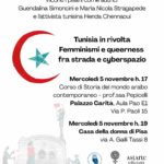 Mercoledì 5 novembre, dalle ore 17:00, all’interno del Corso di Storia del Mondo Arabo Contemporaneo verrà presentato il libro “Tunisia in rivolta. Femminismi e queerness fra strada e cyberspazio.”